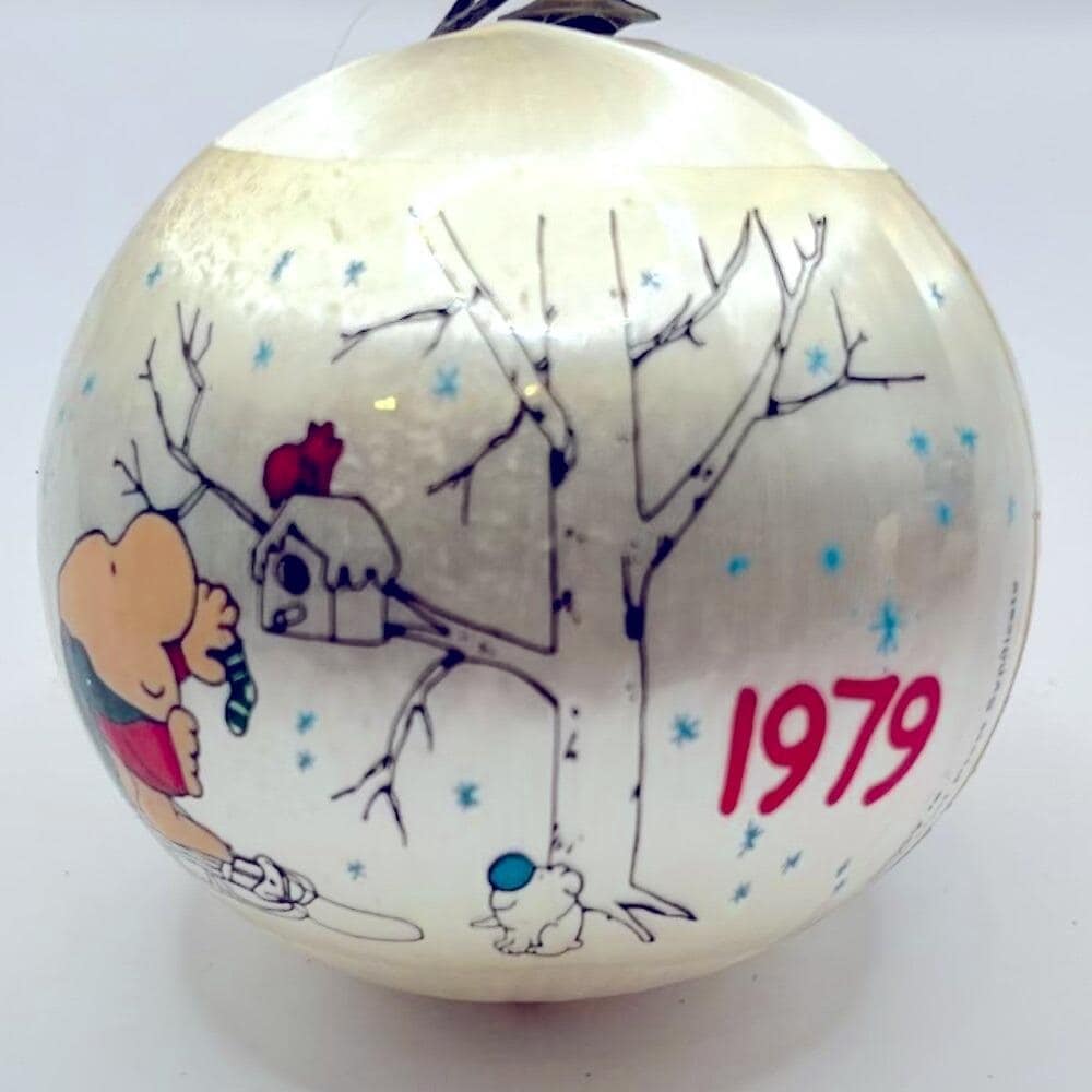 "Merry Christmas 1979" ornament with Ziggy and poinsettia design