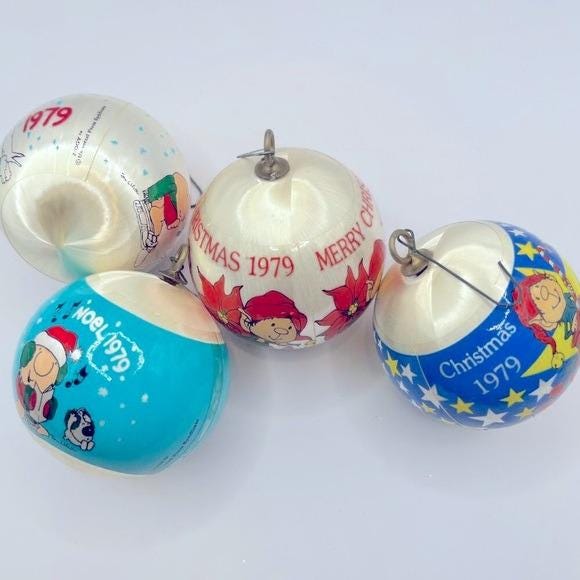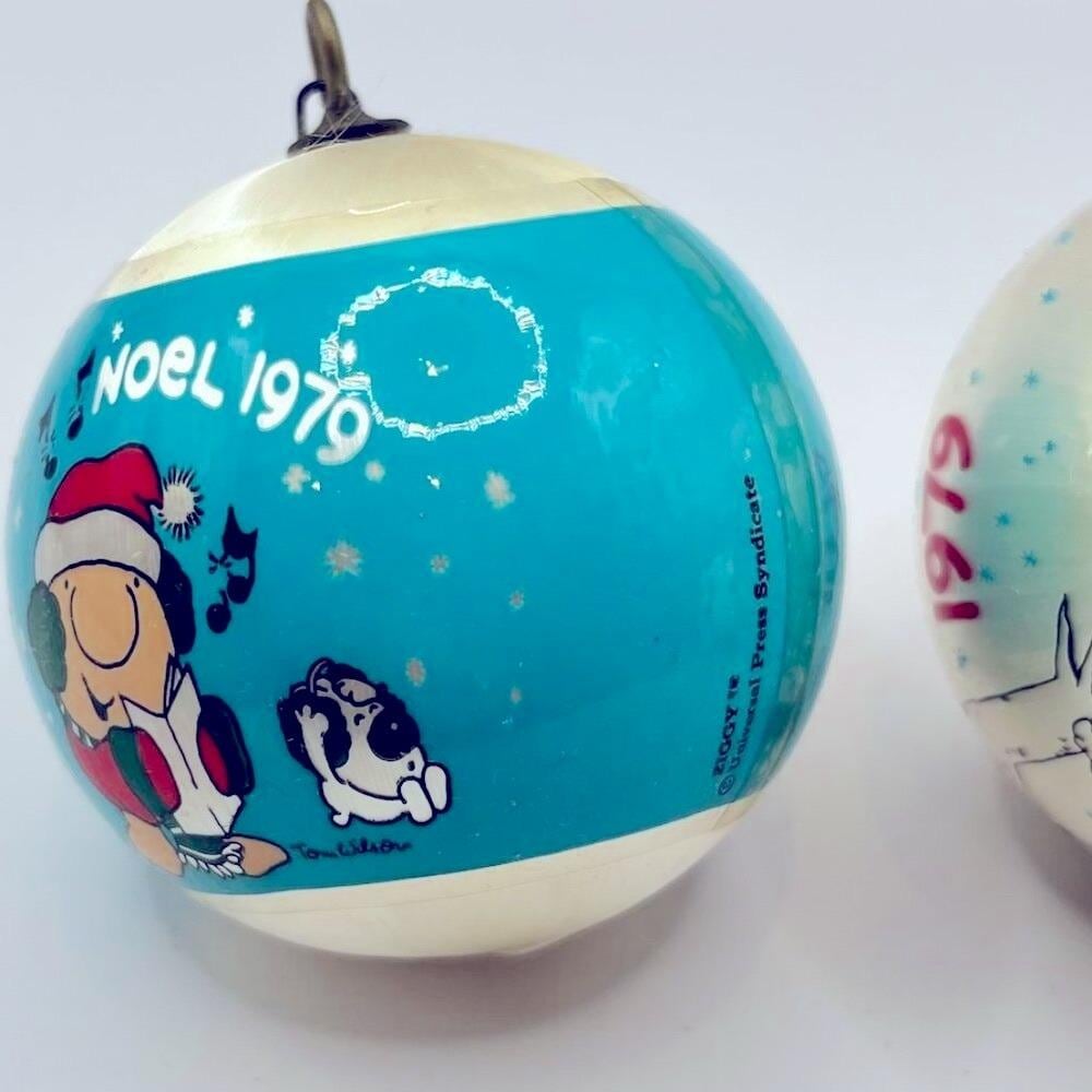 Delightful set of vintage Christmas ornaments from 1979 featuring the beloved comic strip character Ziggy created by Tom Wilson. These collectible ornaments capture Ziggy's innocent charm in festive holiday scenes.