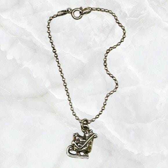 Sterling Silver Bead Chain Bracelet With Sleigh Charm