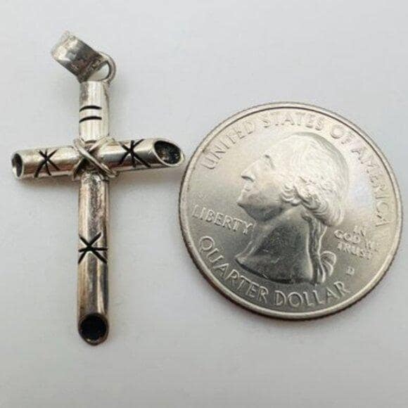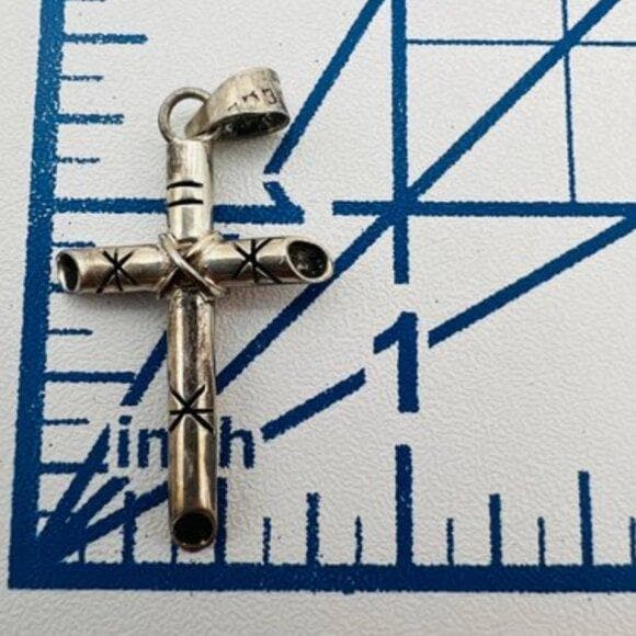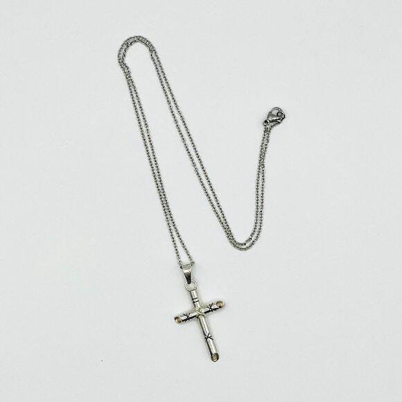 Beautiful sterling silver cross pendant featuring intricate starburst designs on a durable stainless steel chain. This elegant religious jewelry piece combines quality Mexican sterling craftsmanship with modern stainless steel durability for everyday wear.