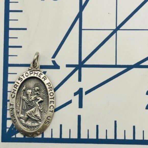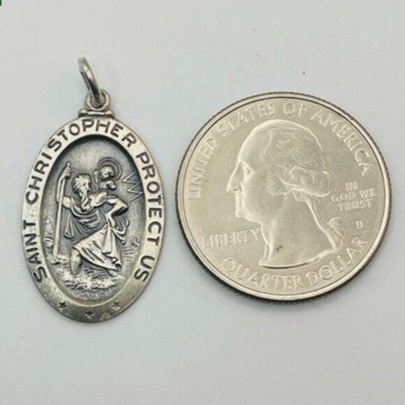 Pendant: Sterling silver oval Saint Christopher medal with traditional iconography